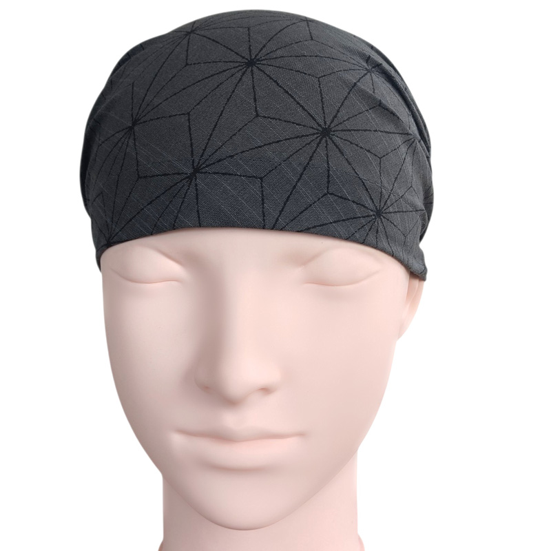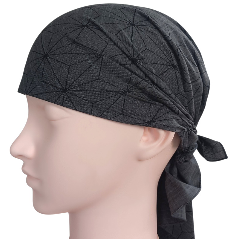 後ろの縛り方でサイズを調整できるのでぴったりかぶれました。帽子と同じ要領でかぶるだけなので簡単でした。結び目を作るとゴム部分が見えないので違和感が無いように思います。スキンヘッドなので外出時の時間のない時に即かぶれる帽子型は便利です。普段は普通のバンダナを愛用していますがこれもいいかも。 |